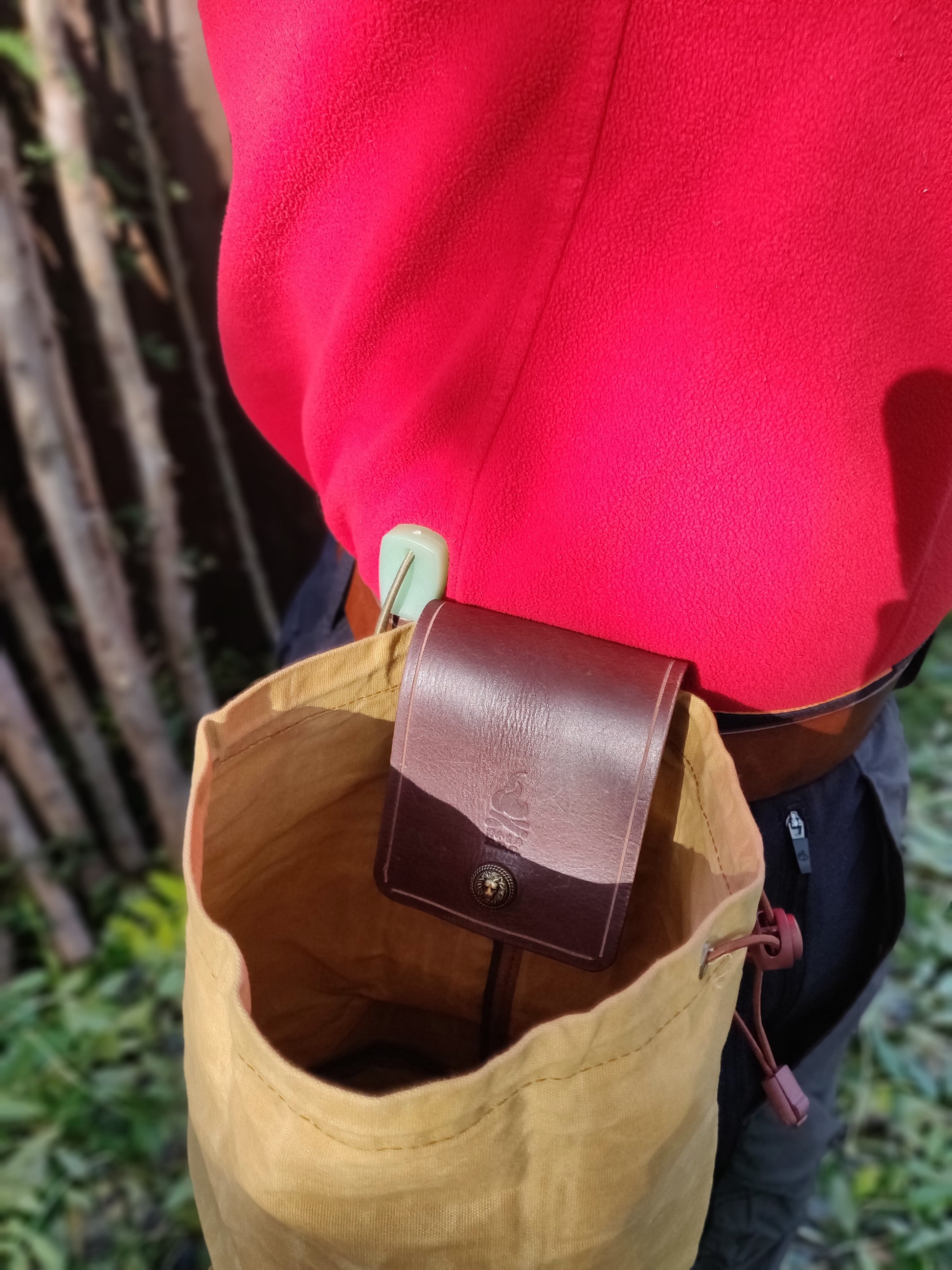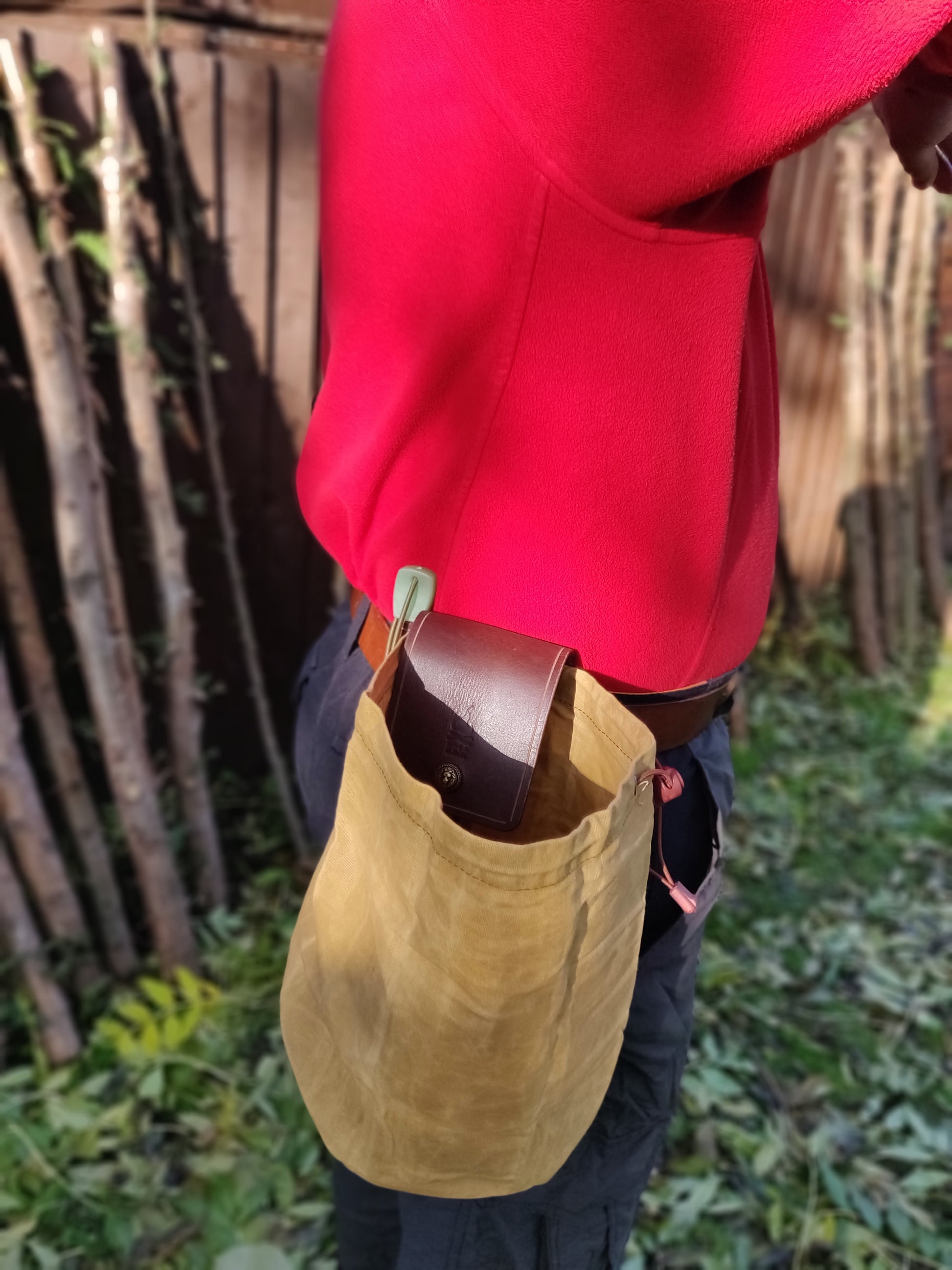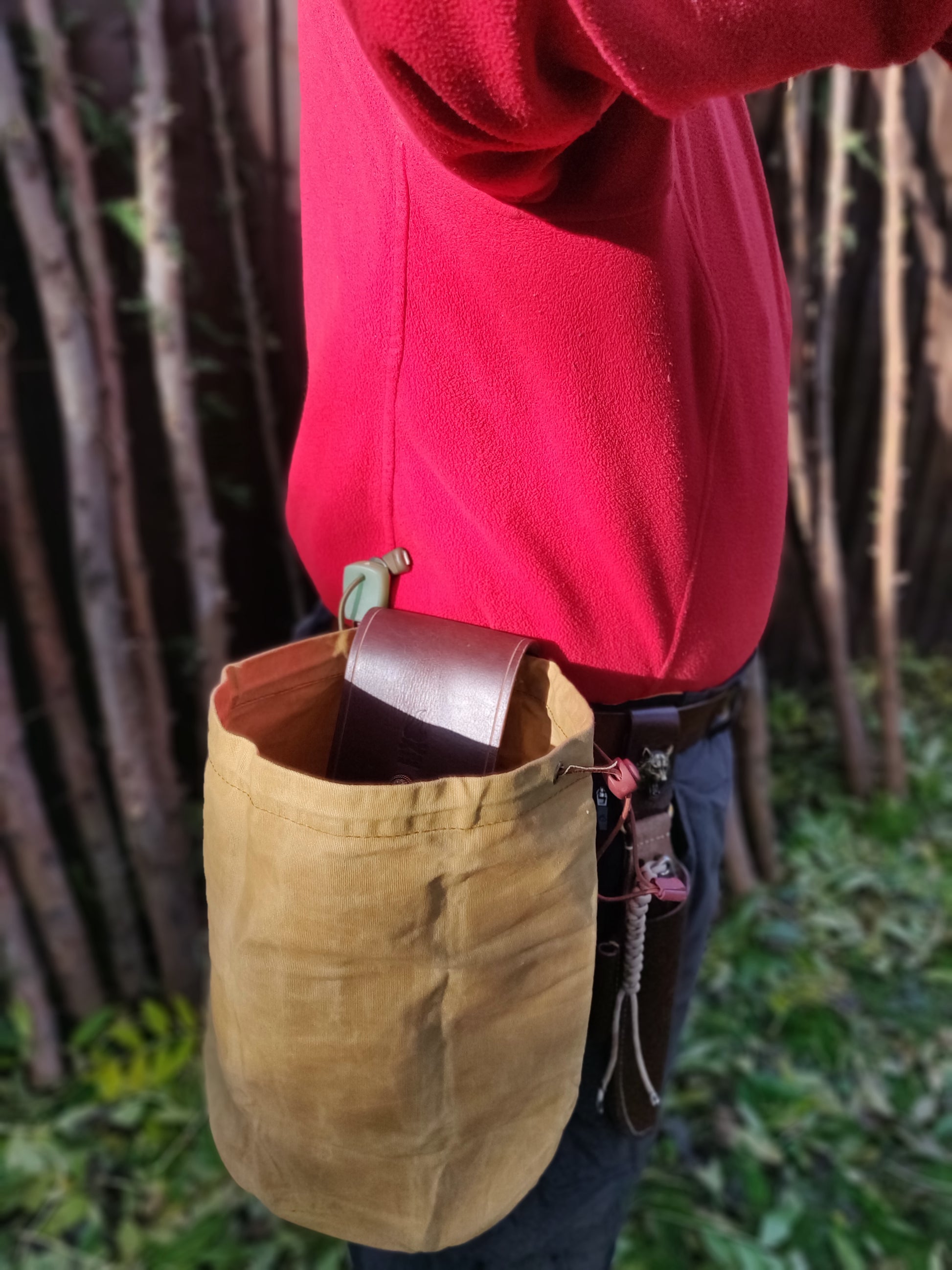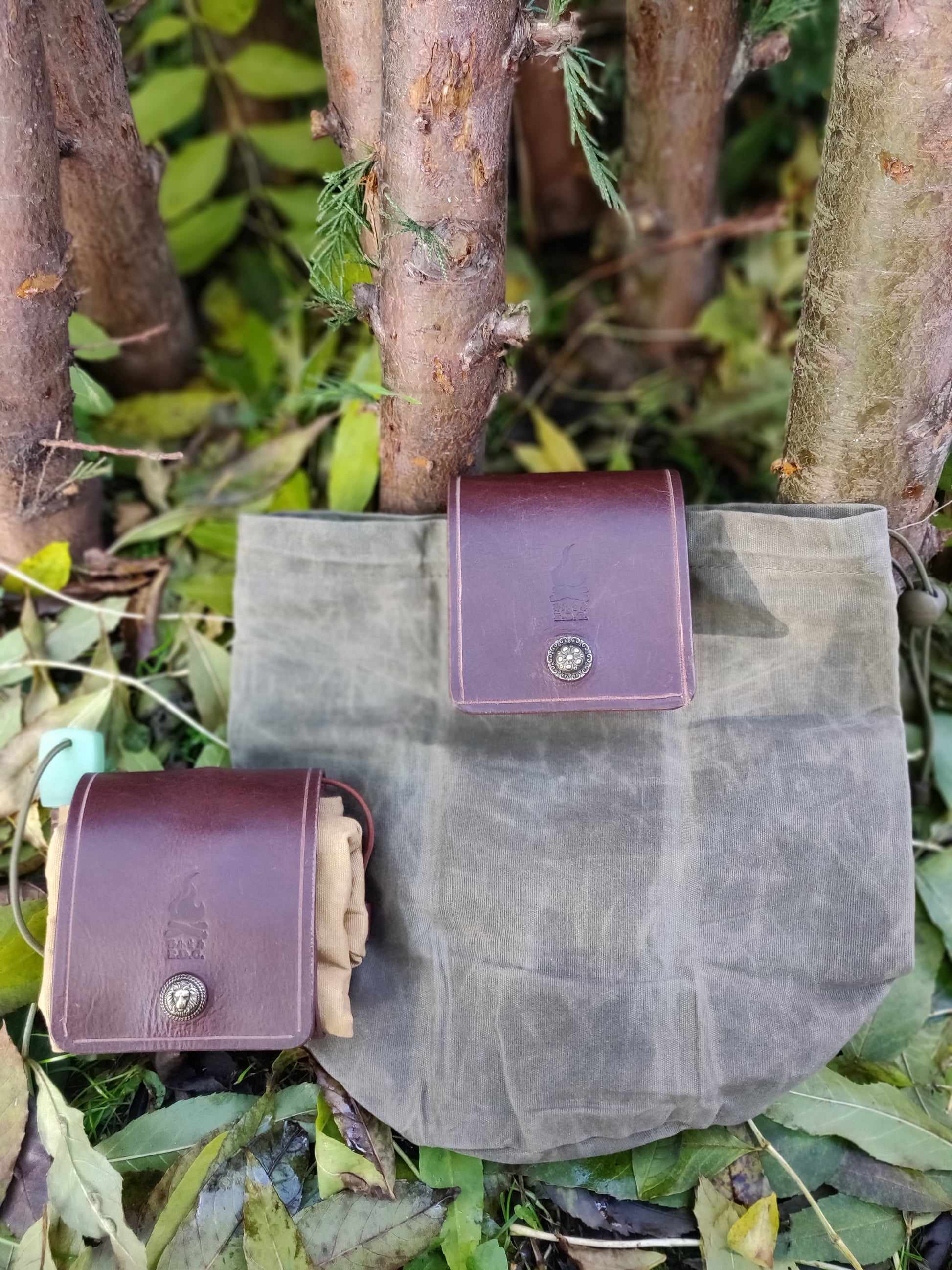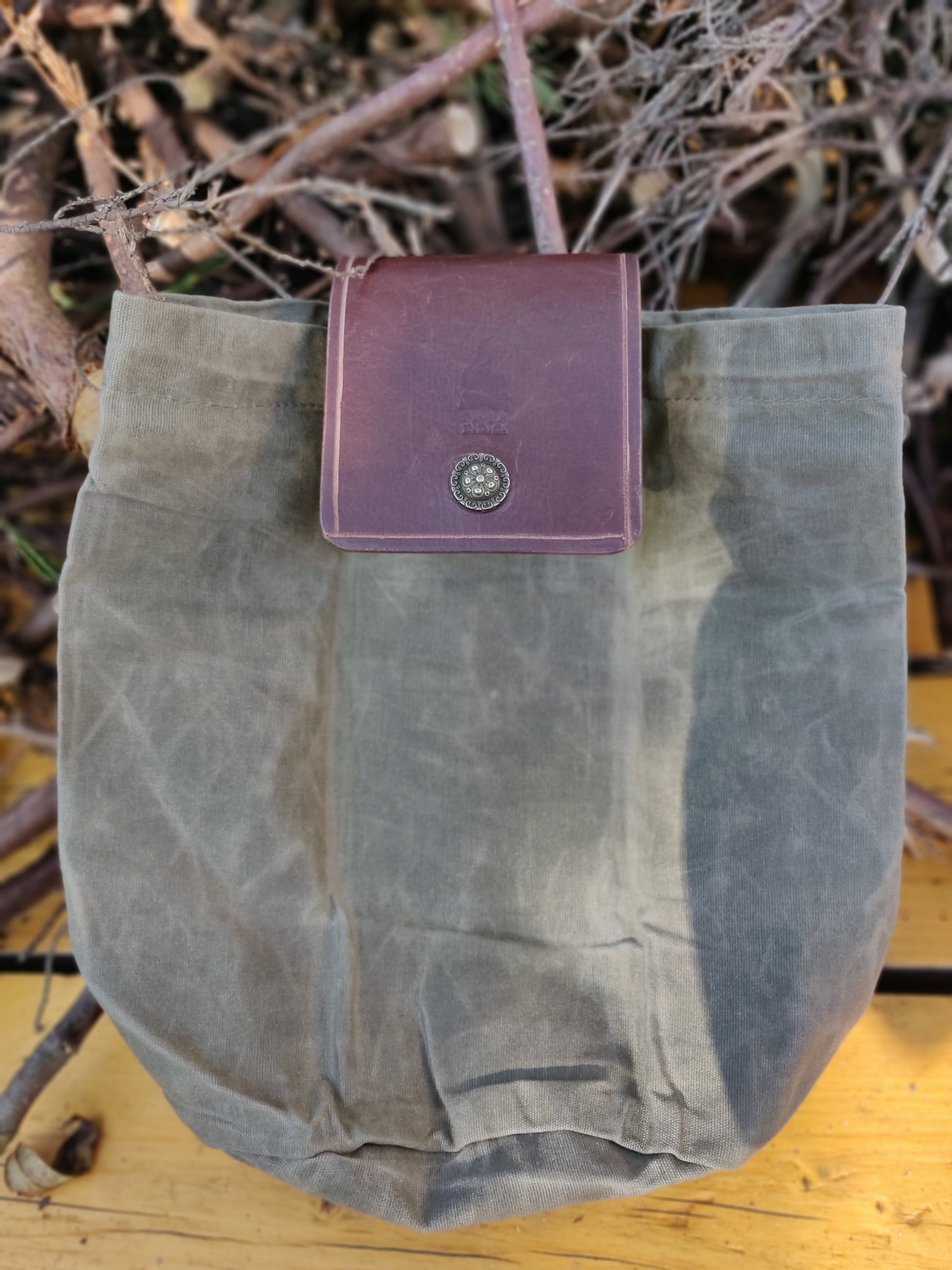 全手工制作真皮油布折叠收集袋。此袋方便携带、是采集食品,引火物的好帮手.