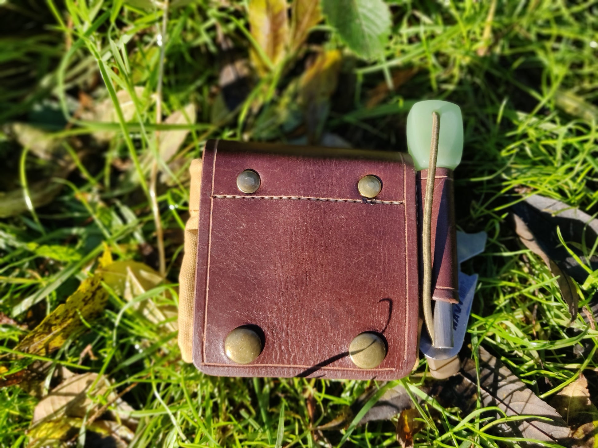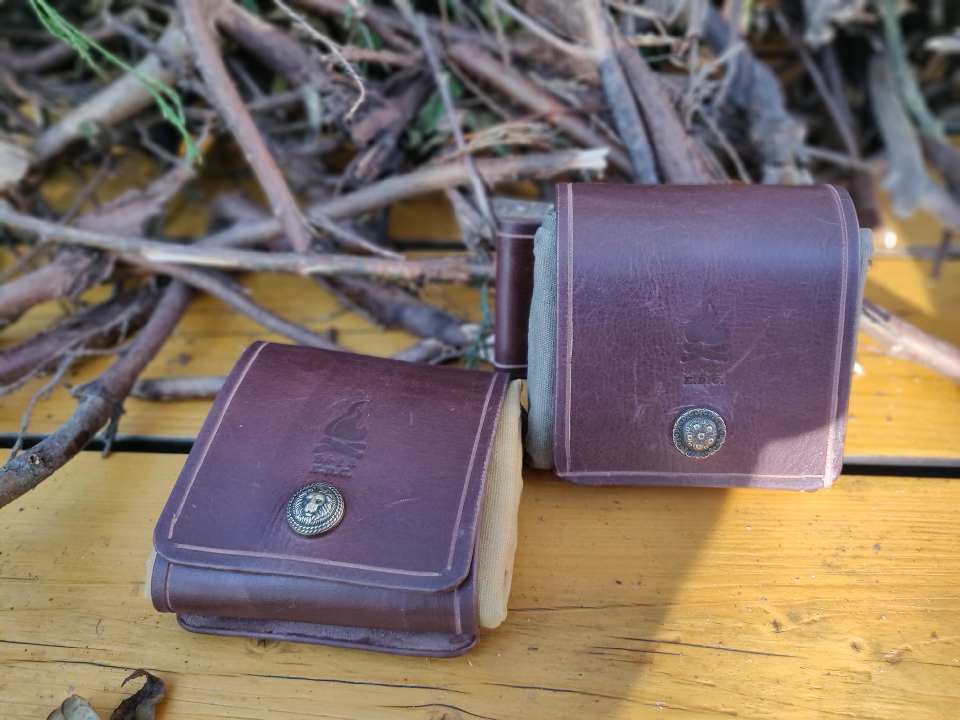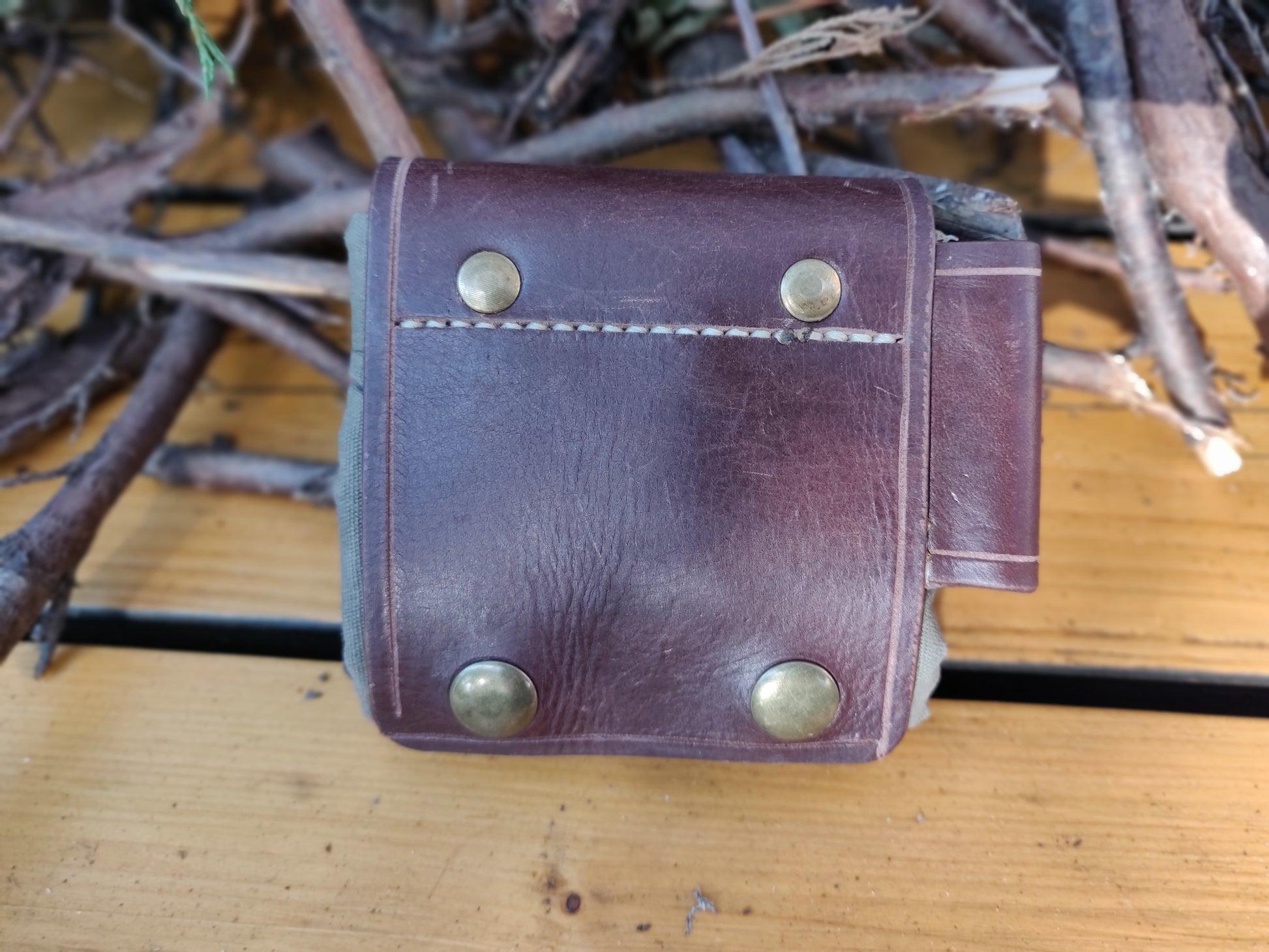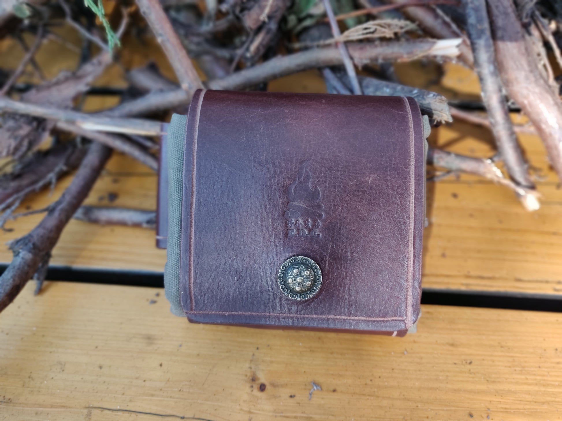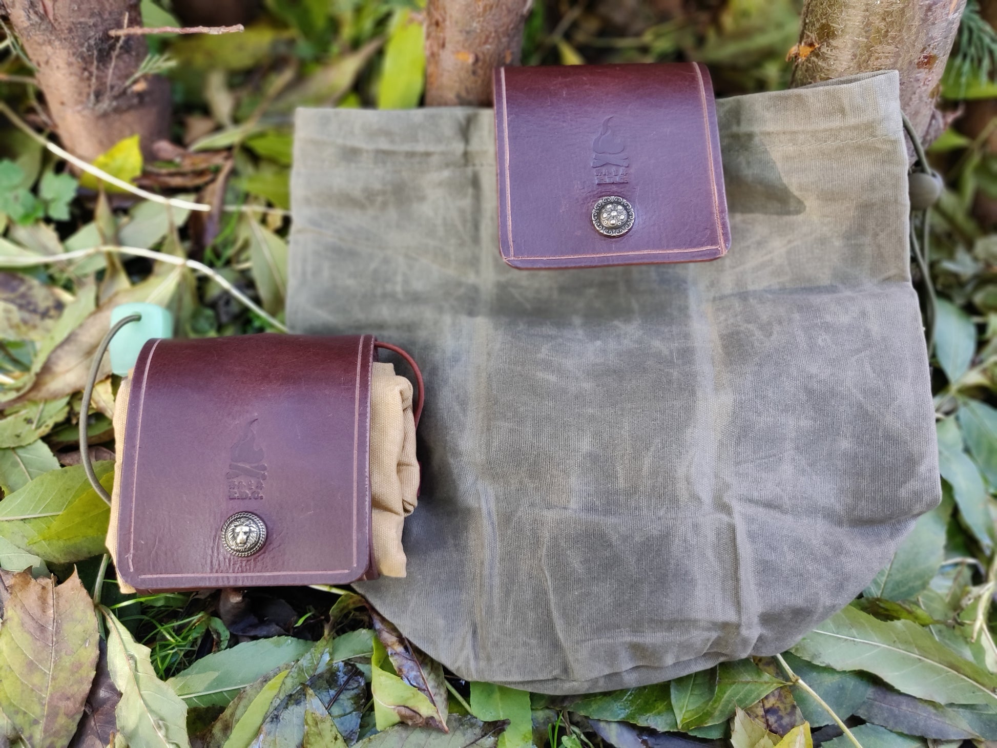 全手工制作真皮油布折叠收集袋。此袋方便携带、是采集食品,引火物的好帮手.